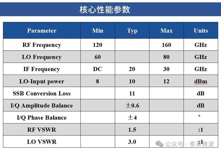 在毫米波通信、雷達探測和高速數據傳輸領域,高頻、高精度、寬帶寬的信號處理設備至關重要。這款高性能 120-160GHz IQ二次諧波混頻器,具備超寬中頻帶寬、卓越的IQ平衡性能,可以大幅度提升射頻系統性能,降低系統調試難度。