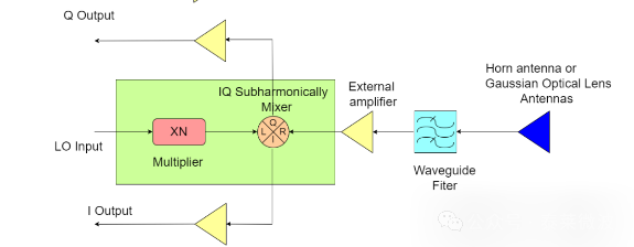 傳統的混頻器在120-160GHz頻段需要極高的LO頻率,而本產品采用二次諧波混頻技術,僅需60-80GHz本振輸入,大幅降低系統設計難度和成本。