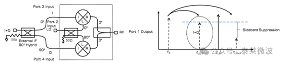 IQ混頻器在雷達與成像中應用同樣依賴于IQ混頻器本身的優勢,包括幅度相位一致性、零中頻架構等特點。除此以外,在外部通過90度電橋實現單邊帶混頻器,實現邊帶抑制。