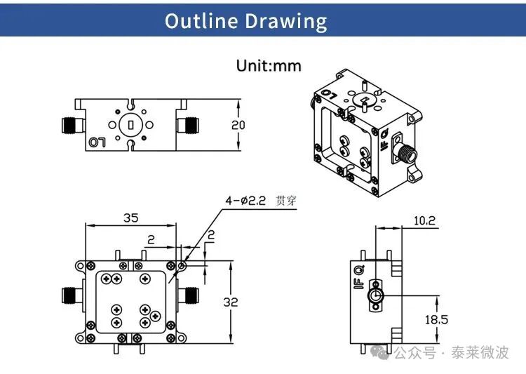 泰萊微波隆重推出120-160GHz IQ二次諧波混頻器TMIQ-120160-0230-06震撼發布。